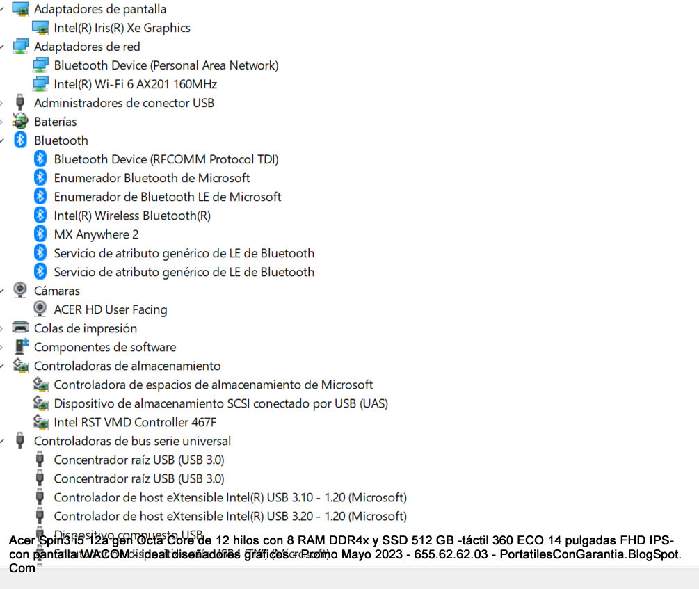 Números de serie y datos técnicos reales del portátil analizado y disponible para entrega inmediata: